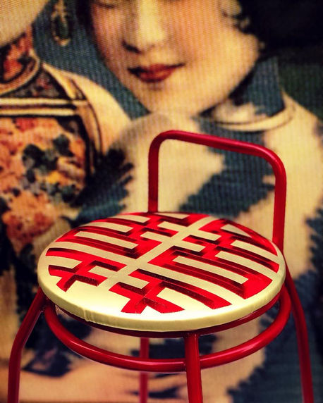 囍 - Double HappinessLimited edition embroidery pieces for Noodle Stool Collection by 56th Studio. -Chair Designed by 56th StudioPhoto by Saran Yen Panya / ease