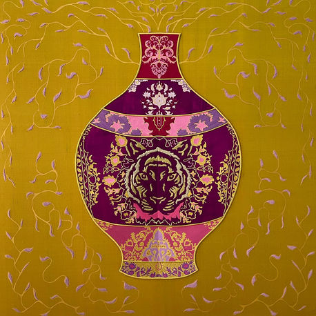 Hand Embroidery with Hand-Painted Batik on Silk.